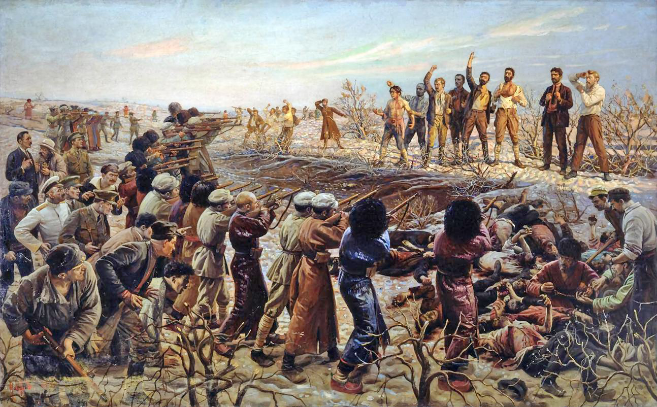 Bir mezara kaç millet sığar? Toplu mezara gömülen 26’lıdan kimisi Ermeniydi, kimisi Azeri… Gürcü ve Rus olanları da vardı. Aralarında “Kafkasların Lenin’i” olarak anılan Stepan Şahumyan da bulunuyordu. Farklı millettendiler belki ama komünisttiler, aynı sınıfın temsilcisiydiler. Rusya’da Çarlık rejiminin yıkılmasına ve işçi iktidarının kurulmasına yol açan Şubat ve Ekim devrimlerinin etkisiyle Bakü Komününün kurulmasına önderlik etmiş, ancak etnik-dini bir savaş cehenneminin ortasında komünü sadece 97 gün yaşatabilmişlerdi. Şimdi de kurdukları komünün kaderini paylaşıyorlardı. Ancak boğazlanan sadece Bakü Komünü ve komünün komiserleri (yöneticileri) değildi, boğazlanan aynı zamanda bölge halklarının sömürüsüz, sınıfsız, savaşsız bir Kafkasya umuduydu.